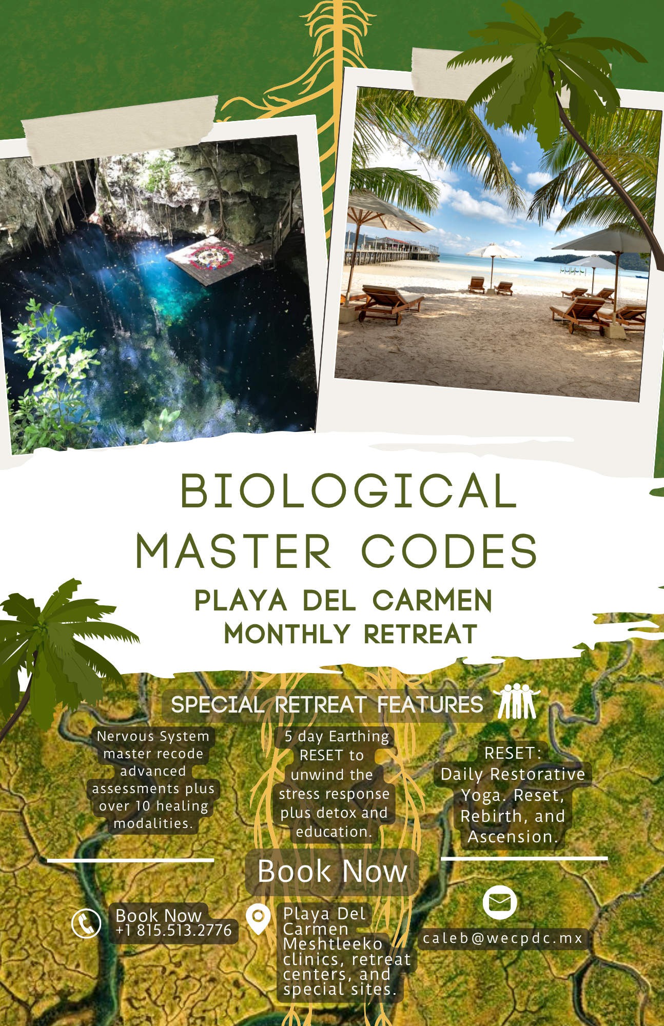 At the Wholeness Earthing Clubhouse. A private holistic retreat center in a quiet junglesque neighborhood in Playa Del Carmen centro (downtown) where we will do our clinical and spa visits, also 150 meters from the beach where we will do daily earthing and meditations, also minutes from special sites such as Mayan Ruins, magical cenotes and more!